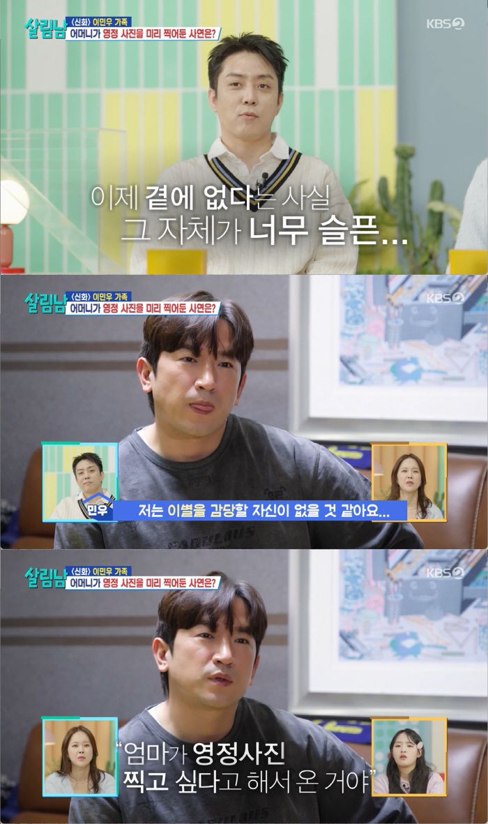 침대 맡에는 영정사진이 있었다. 첫회 때부터 늘 같은 자리에 있던 사진. 이민우는 "어느날 누나에게 전화가 왔다. 폐암 진단을 받고 나서 누나와 사진관에 갔다더라. '둘이 사진 찍으러 갔어?' 물었더니 '엄마가 영정사진 찍고 싶다고 해서 온 거다'라 하더라. 누나가 울기 시작했다. '엄마가 예쁘게 하고 찍고 싶대'라 하더라"라 회상했다. 가장 예쁜 모습을 영정 사진으로 남기고 싶었던 엄마.