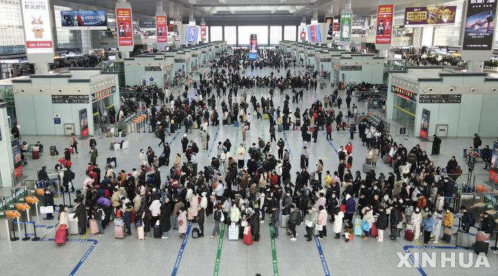 [허페이=신화/뉴시스] ??중국 최대 명절인 ‘춘절(음력설)’을 계기로 한 대이동이 오는 14일 시작된다. 사진은 지난해 1월 26일 안후이성 허페이시 허페이남역에서 열차표 개표를 기다리는 승객들의 모습. 2025.01.06 |