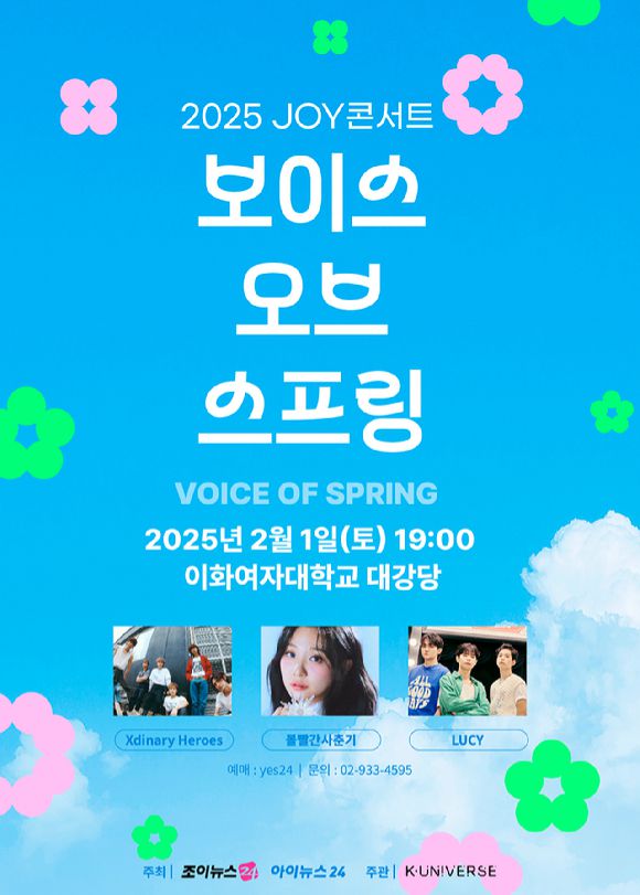오는 2월 1일 오후 7시 서울시 서대문구 이화여자대학교 대강당에서 열리는 '2025 JOY콘서트 - 보이스 오브 스프링(Voice of spring)'는 지난 달 26일 예스24 티켓 오픈 직후 초고속 전석 매진됐다. 단단한 팬덤, 뛰어난 음악성, 높은 대중성을 바탕으로 한 세 팀이 무대에 오르는 만큼 관객들의 기대감 역시 매우 높았던 것으로 분석된다.