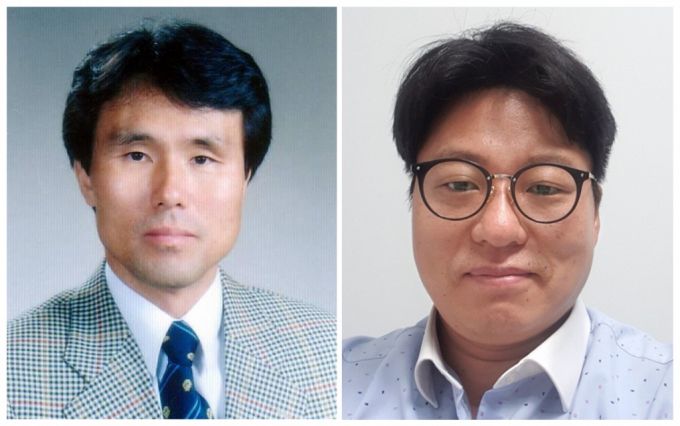 장진해 전주대 탄소연구소 교수(왼쪽 사진)와 김성진 아진전자 대표./사진제공=전주대
