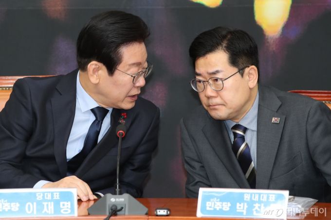 (서울=뉴스1) 이광호 기자 = 이재명 더불어민주당 대표와 박찬대 원내대표가 18일 오전 서울 여의도 국회에서 열린 최고위원회의에서 대화하고 있다. 2024.12.18/뉴스1 Copyright (C) 뉴스1. All rights reserved. 무단 전재 및 재배포, AI학습 이용 금지. /사진=(서울=뉴스1) 이광호 기자 |