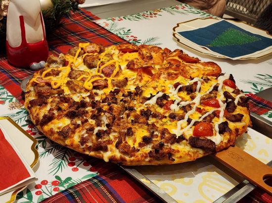 맘스터치 피자 브랜드 맘스피자의 신메뉴 '와우 미트 피자'. 사진=임온유 기자 |