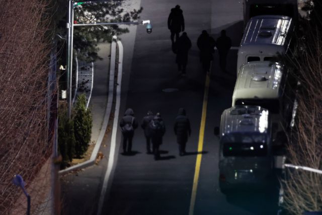 ▲고위공직자범죄수사처와 경찰이 윤석열 대통령의 체포영장 2차 집행 시도에 앞서 전략을 고심 중인 가운데 10일 오전 서울 용산구 한남동 대통령 관저 진입로에 경비인력으로 추정되는 사람들이 이동하고 있다. ⓒ연합뉴스 |