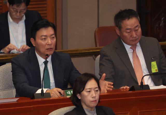 ▲김성훈 대통령경호처 차장이 14일 국회에서 열린 예산결산특별위원회 전체회의에서 의원 질의에 답하고 있다. 오른쪽은 전광삼 대통령실 시민사회수석. ⓒ연합뉴스