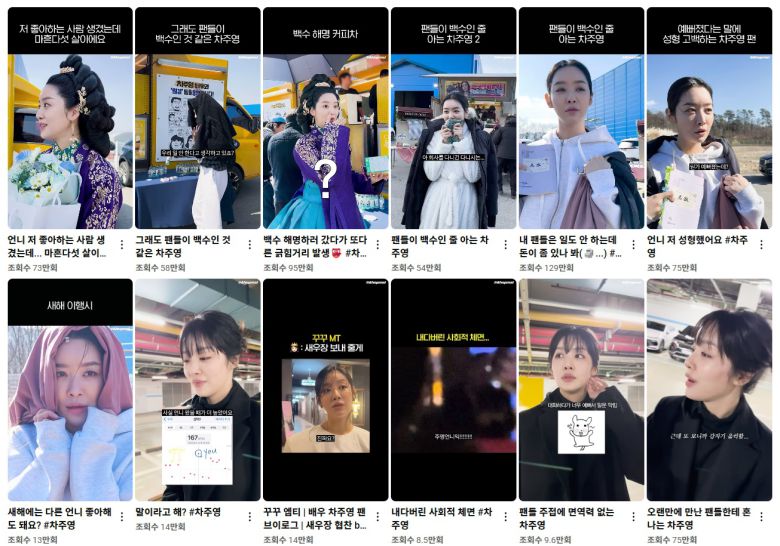 최근 차주영의 팬덤, 일명 '꾸꾸'는 인스타그램 릴스와 유튜브 숏츠를 통해 올린 영상들로 폭발적인 반응을 얻고 있다. 팬계정 '차주영붐은온다'(@ahopmal)가 업로드한 짧은 영상들은 평균 50만~100만 조회수를 기록하며 알고리즘을 타고 대중에게 퍼지고 있다. 특히 "팬들이 백수인 줄 아는 차주영"이라는 제목의 영상 시리즈가 화제를 모았다. 영상 속 팬들은 평일에도 차주영의 스케줄을 따라가며 그녀와 티키타카를 나누는 모습을 보여준다. 배우 차주영은 평일에도 스케줄을 따라오는 팬들에게 "오늘 무슨 요일이야? 일을 안 하는 거야?", "학교는 가야지, 빨리 일을 해야 하지 않겠어?"라며 장난스러운 농담과 함께 팬들을 걱정하는 모습을 보여줬다. 이에 백수가 아니라고 발끈하며 응수하는 팬들의 모습은 유쾌한 웃음을 자아냈다.