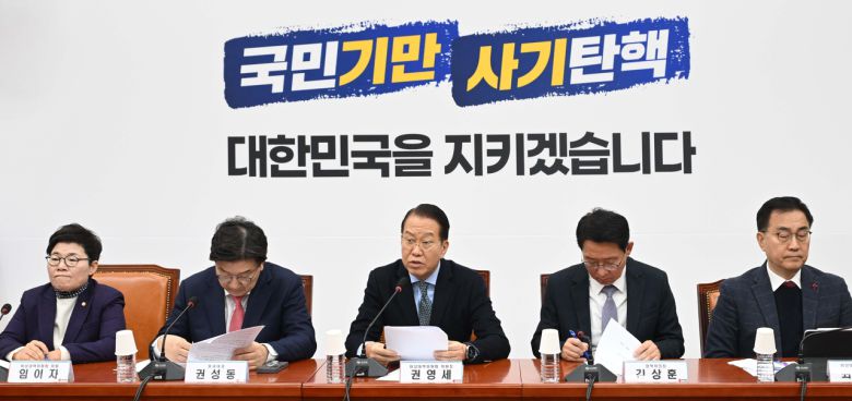 [헤럴드경제=김진·박자연·주소현 기자] 윤석열 대통령 탄핵소추안의 국회 가결 한 달 만에 여야 입장이 뒤바뀌었다. 탄핵 정국의 반사이익을 얻을 것으로 예상됐던 더불어민주당이 뜻밖의 지지율 하락세를 직면한 반면, 국민의힘은 이례적인 보수 결집 바람을 타고 12·3 비상계엄 사태 이전 수준의 지지율을 회복했다. 여야는 헌법재판소의 탄핵심판 결과와 관계없이 조기대선 정국이 현실화할 것으로 보고 각자 계산기를 두드리고 있다. 민주당은 ‘가짜뉴스 색출’ 등 강공에 나섰고, 국민의힘은 강성지지층과 중도층 사이 ‘줄타기’에 들어갔다.