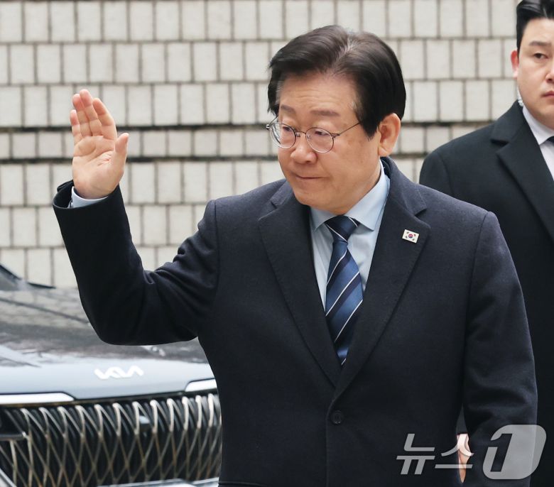 이재명 더불어민주당 대표가 14일 오전 서울 서초구 서울중앙지법에서 열린 '대장동·위례·성남FC·백현동 의혹' 관련 특정범죄가중처벌등에관한법률위반(뇌물) 혐의 공판에 출석하며 지지자를 향해 손인사를 하고 있다. 2025.1.14/뉴스1 ⓒ News1 송원영 기자 |