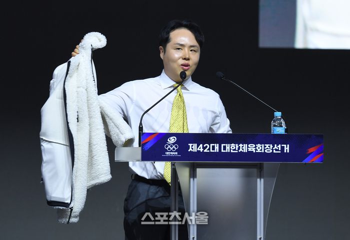 ◇기호 5번 오주영 = 꿈이 있다. 체육회 바꾸고 싶다. 개혁하고 싶다. 그런데 유명인도, 메달리스트도 아니다. 내 부족함을 극복하려고 점퍼를 입고 전국 곳곳 내 체육의 정통성, 철학을 표현하려고 많은 분을 만나 교감했다. 지금 체육회는 줄서기다. 정치가 이 안에서도 벌어진다. 시도체육회도 체육회를 향해 나쁘다고 하는데 그 역시 나쁜 세력은 존재한다. 개혁에 나이는 중요하지 않다. 체육에 빚진 게 없는 난 개혁에 걸림돌이 없다. 기존 기득권과 연결되지 않았다. 체육회장으로 할 일을 하겠다. 우선 2300여명 선거인단을 2만3000명으로 늘리겠다. 17개 시도에 투표소를 설치하겠다. 시도체육회장 선거 때도 지도자, 선수에게 투표권을 주도록 하겠다. 진짜 지도자 처우 개선을 하려면 이들에게 투표권이 주어져야 한다. 진심으로 일하겠다. 지지해달라.