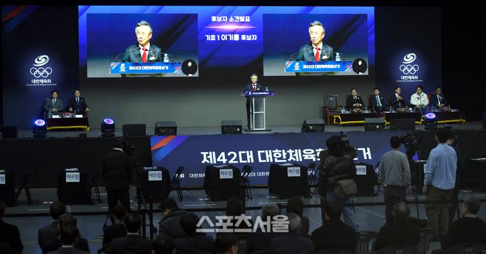 역대 최다인 6명의 후보가 체육 대통령 자리를 두고 경쟁한다. 앞서 대의원 11명과 강신욱 후보가 선거 불공정성을 두고 회장 선거 금지 가처분 신청했으나 전날 법원은 기각 결정을 내렸다. 예정대로 이날 후보자의 소견 발표에 이어 투표, 개표, 당선인 결정 순으로 진행한다. 투표와 개표는 송파구선거관리위원회가 투·개표 참관인의 입회하에 공정하게 운영한다.
