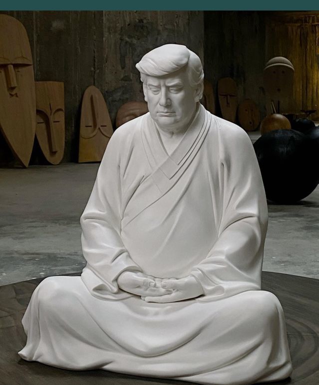 푸젠성 샤먼 출신의 도예가 홍진시(洪金世)가 만든 이 조각상은 다리를 꼬고 명상에 잠긴 부처를 연상시키는 몸통에 눈을 감고 있는 트럼프 당선인의 얼굴이 합쳐진 형태다. 트럼프 당선인이 첫번째 대통령 임기를 마친 직후인 지난 2021년 초에 처음 만들어졌다. 그런데 지난해 11월 트럼프 당선이 대선에서 다시 승리한뒤 또다시 인기를 끌고 있는 것이다.