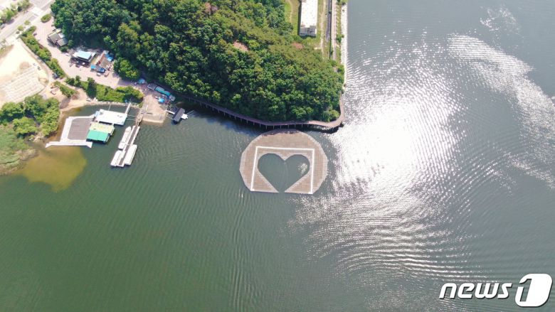 지난 2020년 8월 6일 오전 강원도 춘천시 의암호에서 경찰정 등 선박 3척의 전복 사고가 발생했다.. 사진은 사고 전 의암호의 하트 모양의 인공 수초섬의 모습.(자료사진)/뉴스1 DB |
