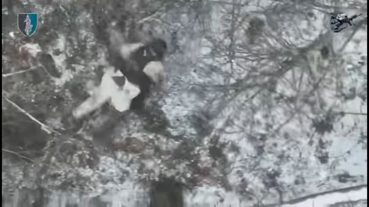 [서울=뉴시스] 우크라이나 특수작전군(SOF)이 지난해 12월 소셜미디어를 통해 공개한 사진으로, 러시아 쿠르스크 전투에서 북한군으로 추정되는 한 병사가 무인기(드론) 공격을 받은 뒤 쓰러져 있다. 205.01.14. *재판매 및 DB 금지