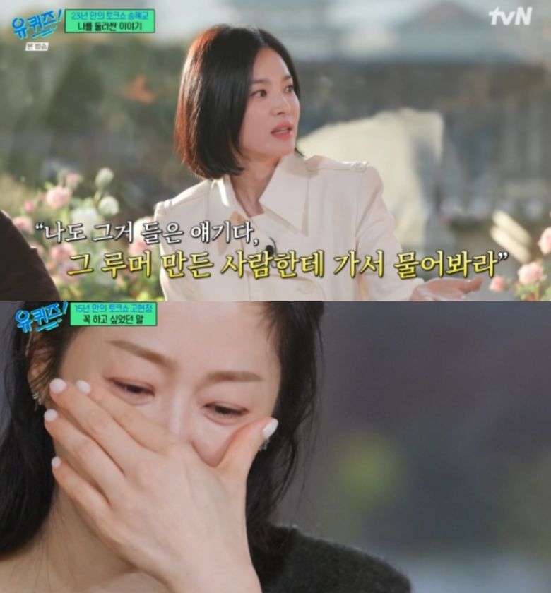 지난 1월 8일 '유퀴즈'에서 송혜교는 자신을 둘러싼 루머 심경까지 모두 밝히며 인생사를 솔직히 전해 많은 응원을 받았다.