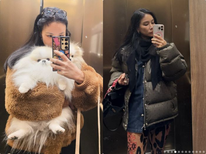 사진 속 고소영은 자신이 거주하고 있는 엘리베이터 안에서 거울 셀카를 남기고 있는 모습. 그는 반려견들을 품에 안으며 행복한 일상을 자랑했다. 특히 핑크색 숏패딩부터 알록달록한 패턴이 들어간 레깅스까지 화려하면서도 수수한 패션 센스가 돋보인다.