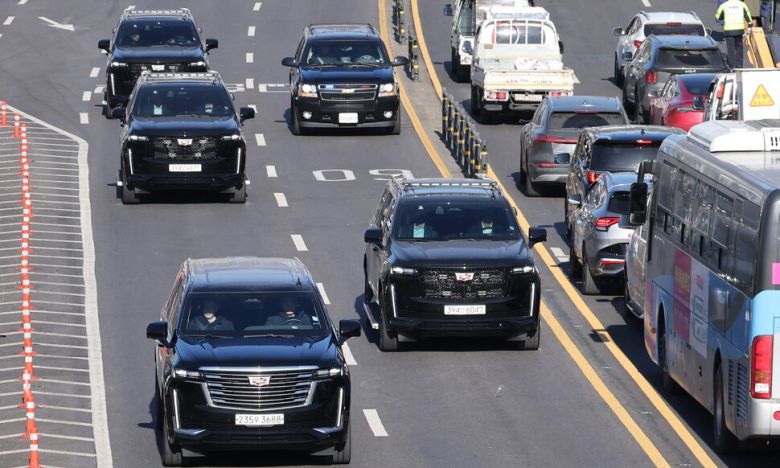 고위공직자범죄수사처(공수처)와 경찰청 국가수사본부 비상계엄 특별수사단(특수단)의 수사 협의체인 공조수사본부가 ‘내란 우두머리 피의자’ 윤석열 대통령을 체포한 15일 오전 윤 대통령이 탄 차량 이 서울 한남동 대통령 관저를 빠져나와 공수처로 향가고 있다. 신소영 기자 viator@hani.co.kr |