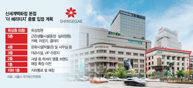 신세계는 더 헤리티지의 내·외부 인테리어를 이름에 걸맞게 문화재 원형을 그대로 간직하는 방향으로 설계했다. 사업 관계자는 “(내부 인테리어의 경우) 당초 원형이 훼손된 부분들을 전 층에 걸쳐서 다 원형을 회복했다”며 “외부도 변이 없이 보존하는 것으로 현상 변경 승인이 됐다”고 밝혔다.