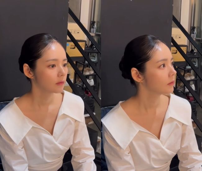 공개된 영상에는 한가인이 광고 촬영 준비 중인 모습이 담겼다. 머리를 단정하게 정리한 한가인은 큼직한 이목구비로 감탄을 자아냈다. 긴 목선과 단아한 자태가 인상적으로, 특히 옆모습은 국보급이라고 해도 손색 없을 정도로 눈길을 끈다.