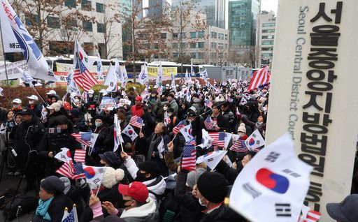 16일 서울 서초구 서울중앙지방법원 앞에서 윤석열 대통령 지지자들이 대통령 체포에 항의하며 집회시위를 하고 있다. 뉴시스