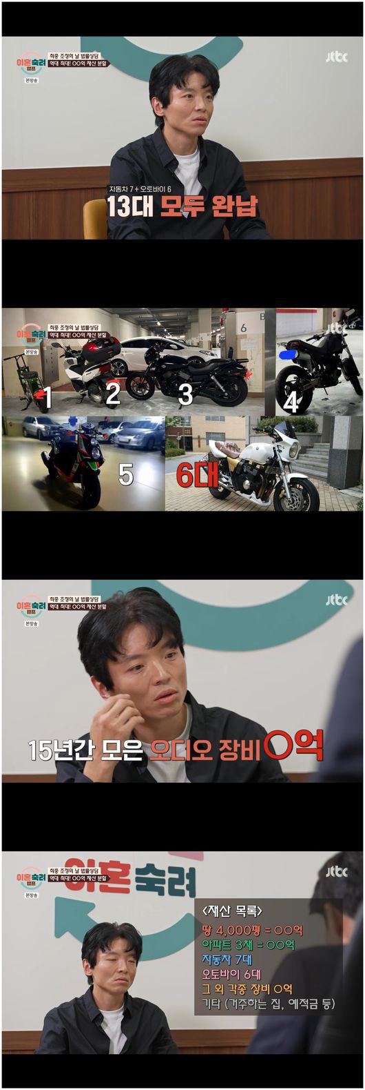 신홍철은 “아파트는 3채, 자동차는 7대, 바이크는 6대, 취미로 15년 동안 모은 오디오 장비가 꽤 된다”라며 박민철 변호사에게 말했다. 박민철 변호사는 입을 떡 벌렸다.