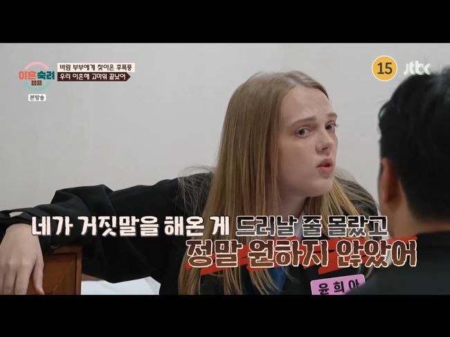 윤희아는 방 안으로 돌아오자마자 김찬호를 향해 쏘아붙였다. 윤희아는 “6년 동안 날 속였냐. 다른 질문들은 다 진실인데 하필 왜 그 질문만 거짓이겠냐”라면서 “내가 캠프 오기 전에 여기 거짓말이면 여기 오지 말자고 했지 않냐”라고 말했다.