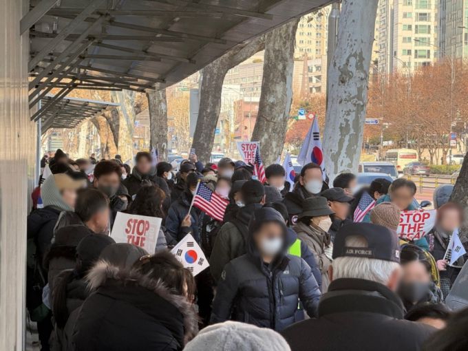 60대 여성 손모씨는 "법을 수호해야 하는 법관들이 개인적 이익을 위해서 영장을 발부한 것"이라며 "몹시 나쁘다"라고 말했다. 그는 "직무만 정지됐을 뿐이지 윤 대통령은 현직 대통령"이라며 "또 대통령이기 이전에 한 국민으로서 법의 보호를 받아야 한다"고 했다.