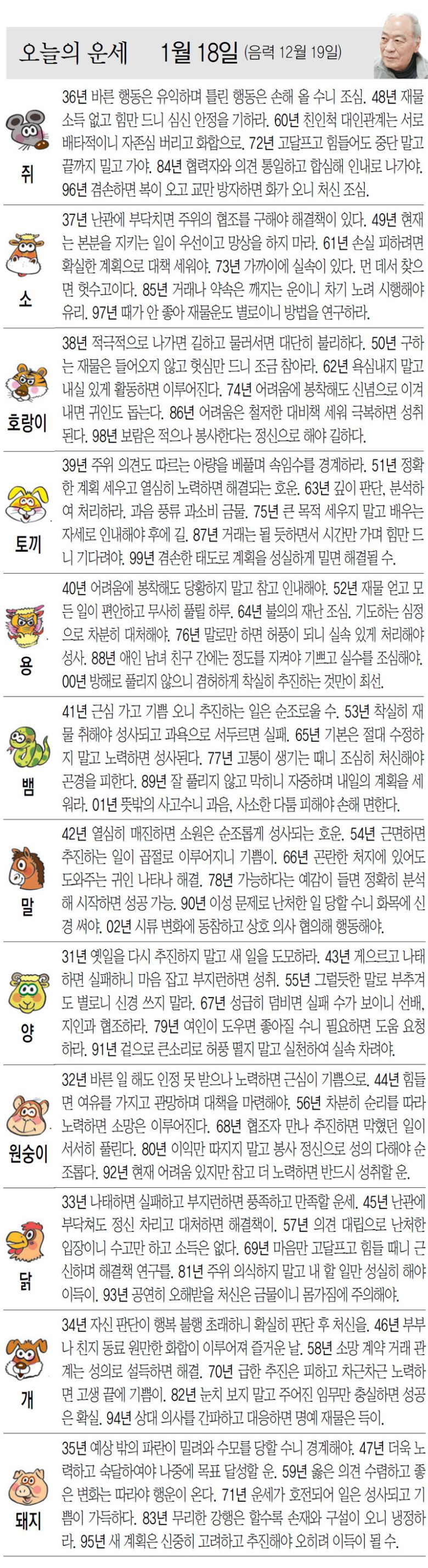 [오늘의 운세/01월 18일]