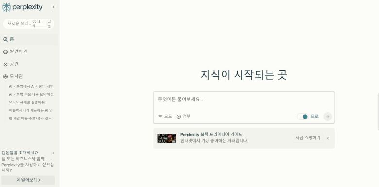 퍼플렉시티 첫 화면. /홈페이지 캡처