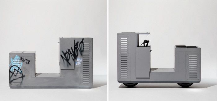 지상 변압기를 꼭 닮은 특이한 오토바이가 개발됐다. 이상한 디자인의 이유는 도난 방지다. 오토바이지만 오토바이처럼 생기지 않은 교통수단을 만들어 절도범의 눈을 속이려는 것이다.