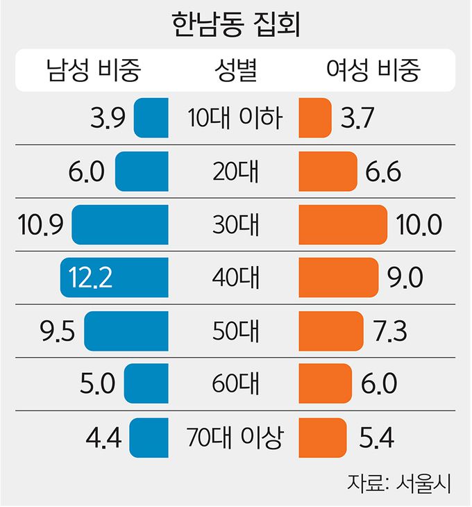 ◆한남동엔 30·40 男, 여의도엔 20·30 女
