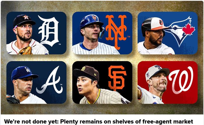 MLB닷컴은 20일 현재 FA시장에 남은 상위 10명의 선수에 대해 리포팅했다. 이들 10명은 김하성을 비롯해 알렉스 브레그먼, 피트 알론소, 앤서니 산탄데르, 잭 플래허티, 카를로스 에스테베즈, 맥스 셔저, 주릭슨 프로파, 닉 피베타, 커비 예이츠다.