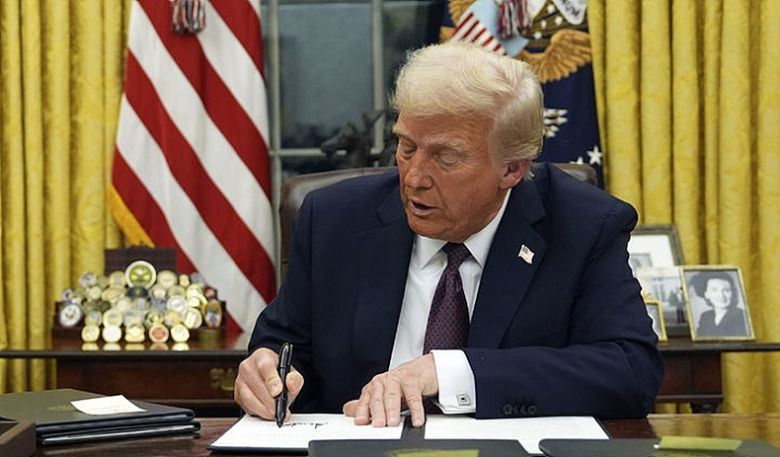 20일(현지시각) 도널드 트럼프 미국 대통령이 백악관 집무실서 행정명령에 서명하고 있다. ⓒ뉴시스 |