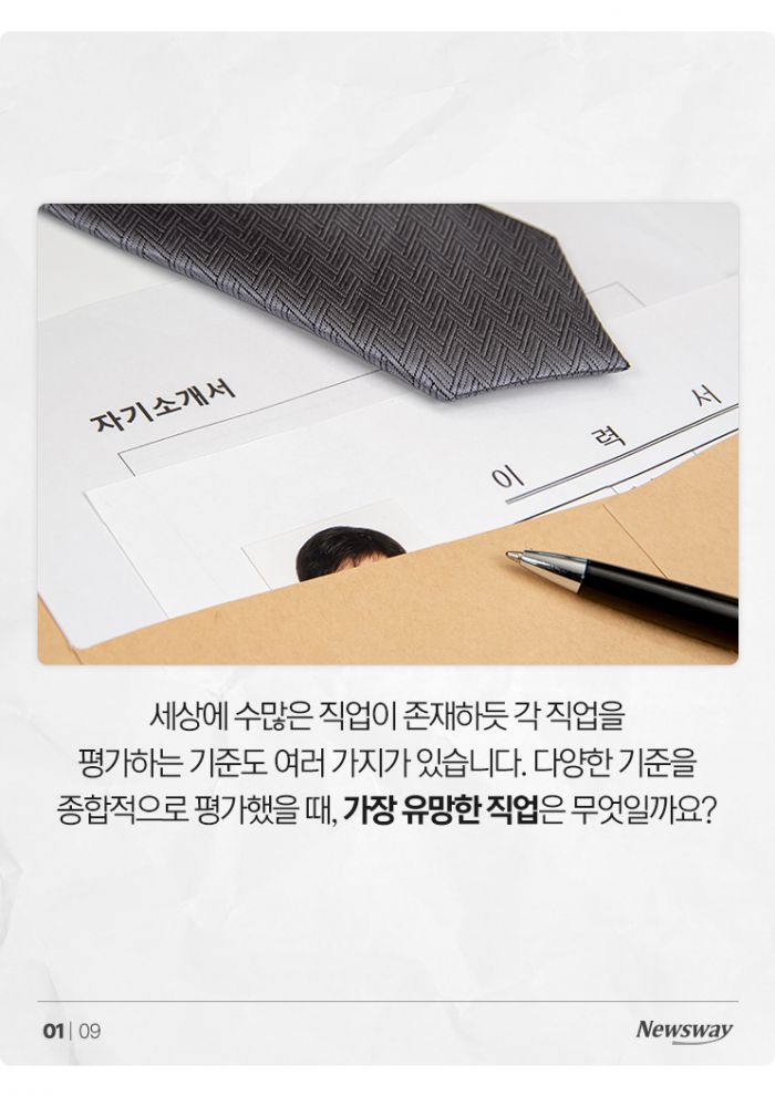 세상에 수많은 직업이 존재하듯 각 직업을 평가하는 기준도 여러 가지가 있습니다. 다양한 기준을 종합적으로 평가했을 때, 가장 유망한 직업은 무엇일까요?