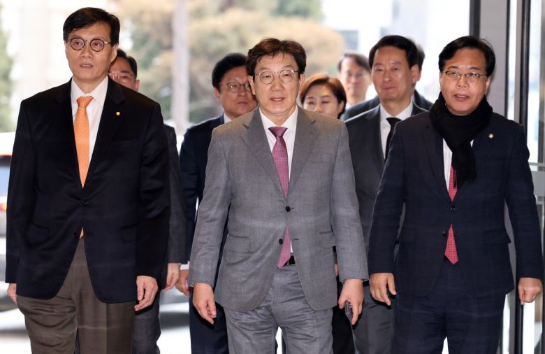 비상계엄 선포라는 정치적 불확실성을 해소할 대책을 한은에 전했냐는 물음엔 "이 총재가 정치적 충격 때문에 불안해지고 경기도 침체되는 면에 대해서 걱정을 주셨고 당은 공감하면서 빨리 정국과 국정을 안정시킨다는 목표를 드렸다"고 말했다.