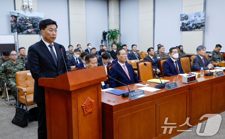 (서울=뉴스1) 안은나 기자 = 홍장원 전 국가정보원 1차장이 22일 서울 여의도 국회에서 열린 윤석열 정부의 비상계엄 선포를 통한 내란 혐의 진상규명 국정조사 1차 청문회에 출석해 질의에 답하고 있다. 오른쪽 첫번째는 조태용 국정원장. 2025.1.22/뉴스1