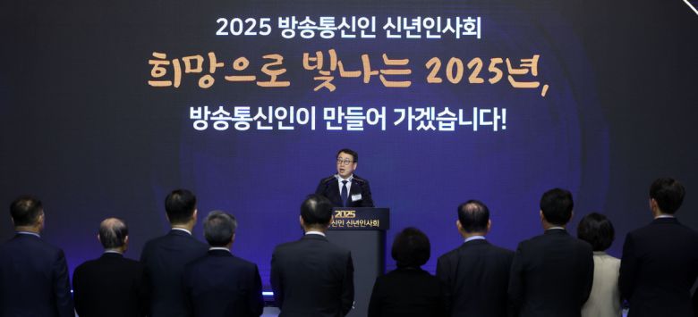 유영상 한국정보통신진흥협회장이 22일 서울 강남구 코엑스에서 열린 2025 방송통신인 신년인사회에서 인사말을 하고 있다. |