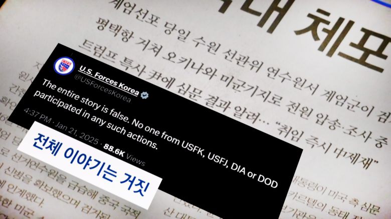 선관위 연수원에서 중국인 99명이 체포됐다는 가짜뉴스, 주한미군이 "완전히 거짓"이라고 밝혔지만, 부정선거 음모론자들은 여전히 이걸 받아들이지 않고 있습니다. 이 때문에 주한미군이 아예 공식 계정에서 스카이데일리 보도가 거짓이란 얘기다, 주한·주일미군, 미국 국방부 어디도 체포한 일 없다, 일일이 설명했습니다.
