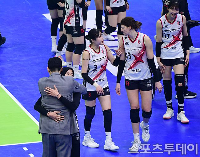 [수원(경기)=스포츠투데이 권광일 기자] 2024-2025 도드람 V-리그 여자부 현대건설-정관장 경기가 22일 오후 경기도 수원시 수원실내체육관 열렸다. 정관장이 현대건설을 상대로 세트스코어 3-2 승리하고 있다. 2025.01.22. [스포츠투데이 권광일 기자 sports@stoo.com]이 기사의 카테고리는 언론사의 분류를 따릅니다.0공유하기