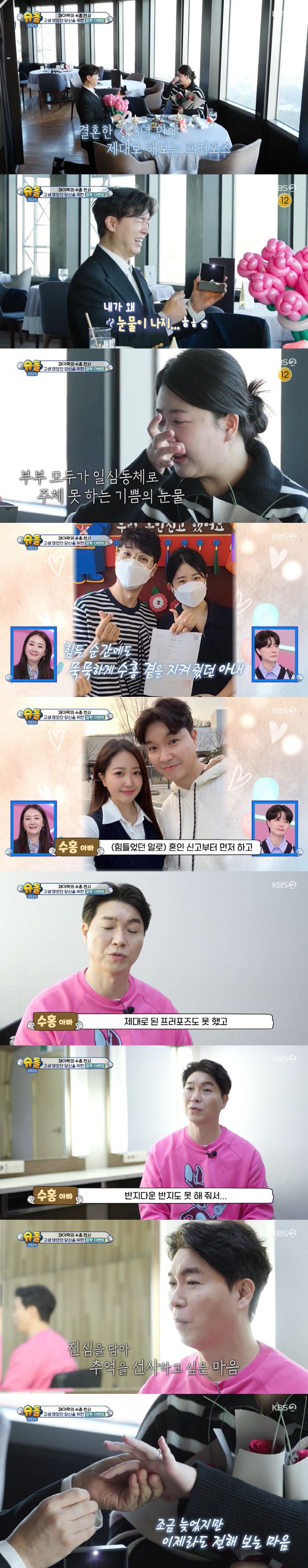 [스포츠조선 김소희 기자] 방송인 박수홍이 결혼 3년 만에 김다예에게 프러포즈했다.