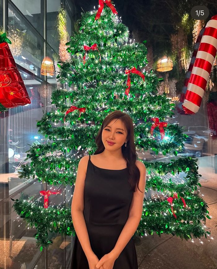 공개된 사진 속 송가인은 검은색 원피스를 입고 크리스마스 트리 앞에서 사진을 찍고 있다.