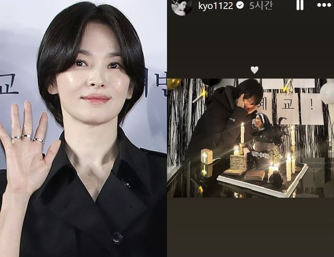 24일 송혜교가 개인 계정을 통해 사진 여러 장을 게재했다. 통일된 사진은 '검은수녀들' 포스터 사진. 특히 관련 케이크도 선물받은 송혜교는 행복한 미소를 짓고 있다.