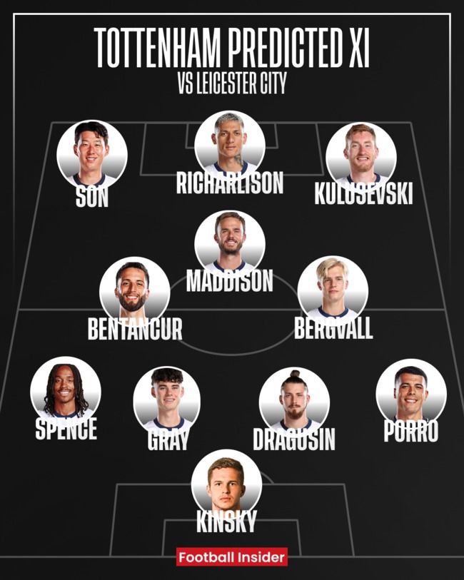 토트넘은 26일 오후 11시(이하 한국시간) 영국 런던의 토트넘 홋스퍼 스타디움에서 2024-25시즌 잉글랜드 프리미어리그(PL) 23라운드 레스터 시티와 격돌한다. 현재 토트넘은 7승 3무 12패 승점 24점으로 15위에 그치고 있다.