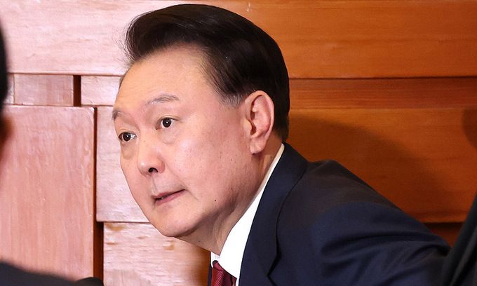 윤석열 대통령이 23일 서울 종로구 헌법재판소에서 열린 탄핵심판 4차 변론에 출석해 있다. 사진공동취재단 |