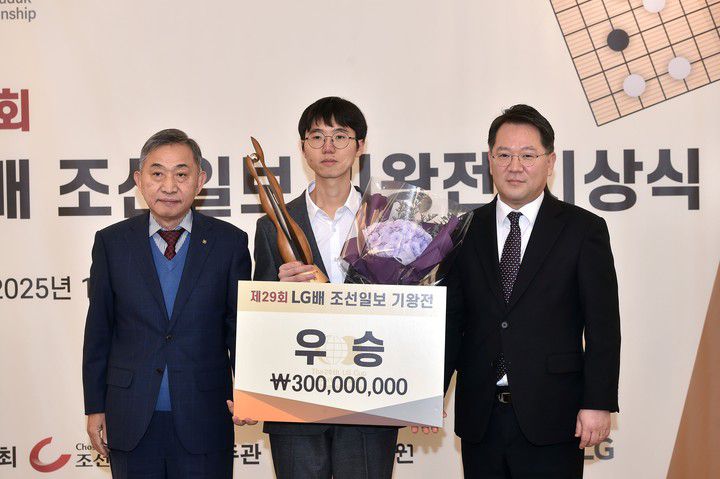 (MHN스포츠 엄민용 선임기자) 제29회 LG배 기왕전 시상식이 조선일보사에서 24일 열렸다. 시상식에는 주최사 조선일보사 홍준호 대표이사와 박은호 문화사업단장, 후원사 ㈜LG 정정욱 전무, 주관사 한국기원 양재호 사무총장 등이 참석했다.