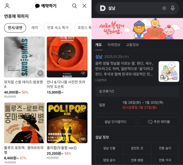 카카오톡 예약하기에서는 ‘행복을 찍는 사진작가 안나&다니엘’, ‘툴루즈 로트렉: 몽마르트의 별’ 등 전시를 설맞이 할인가에 제공한다.