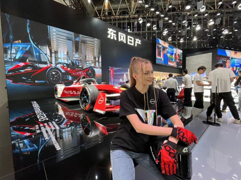 2024년 베이징 모터쇼에서 한 모델이 신형 차량을 선전하고 있다, 사진=이석우기자 |