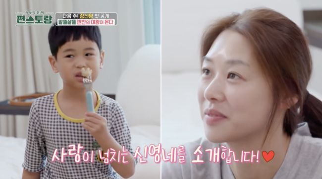 이어 영상에서 장신영이 둘째 아들 정우 군과 등장했다. 장신영은 둘째 아들을 꼭 끌어안고 뽀뽀를 하며 아침을 맞았다. 제작진은 ‘사랑이 넘치는 신영네를 소개합니다’라고 했고 둘째 아들의 모습만 공개됐다.