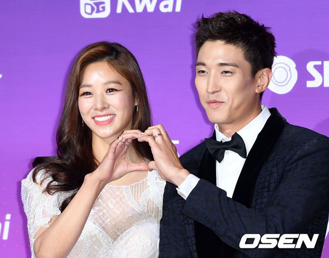 [OSEN=이대선 기자] 30일 오후 서울 상암동 SBS 프리즘 타워에서 '2017 SBS 연예대상' 레드카펫 행사가 열렸다.배우 장신영, 강경준 부부가 레드카펫을 밟고 있다./sunday@osen.co.kr |