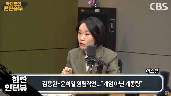 ◆ 이소영> 제가 아까 말씀드린 것처럼 이거는 경고성이고 이거는 뭐 계몽을 하기 위한 거고 이거 자체가, 그러니까 차라리 무슨 내가 간첩단에 대한 첩보를 받았다. 북한이 뭐 쳐들어 온다고 하는 내가 어디 쪽지를 받아서 한 것이라고 얘기했으면 그거는 진실을 따져볼 일이지만 그건 자백 진술이 아닌데요. 이거는 원래 2시간 만에 해제하려고 그랬어. 금방 뭐 반나절 하려고 했던 거야라는 얘기 자체가 이거는 전혀 계엄의 사유가 되지 않는데 대통령의 권한을 남용해서 지금 군인을 보내고 경찰에 보내서 지금 그 멀쩡한 군인들, 경찰들 어떻게 됐는지 아세요? 정말 계엄인지 뭔지 알지도 못하고 출동했던 사람들이 다 지금 경찰, 검찰에 입건되고 조사받고 처벌받게 생겼거든요. 이런 사태를 지금 본인이 대통령의 비상대권을 남용했다고 자백한 거나 다름이 없는 거죠.