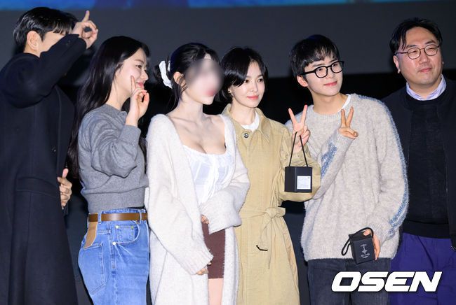 배우 신재휘, 전여빈, 송혜교, 문우진, 권혁재 감독이 관객과 기념촬영을 하고 있다. 2025.01.25 /sunday@osen.co.kr
