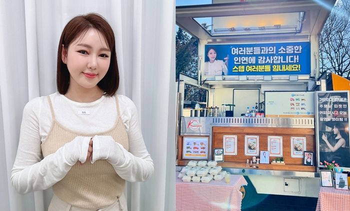 [스포츠서울 | 원성윤 기자] 가수 송가인이 컴백 신곡 뮤직비디오 스태프들을 위해 커피차를 선물했다.